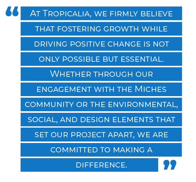 At Tropicalia, we firmly believe that fostering growth while driving positive change is not only possible but essential. Whether through our engagement with the Miches community or the environmental, social, and design elements that set our project apart, we are committed to making a difference.