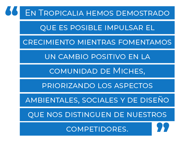 En Tropicalia hemos demostrado que es posible impulsar el crecimiento mientras fomentamos un cambio positivo en la comunidad de Miches, priorizando los aspectos ambientales, sociales y de diseño que nos distinguen de nuestros competidores.
